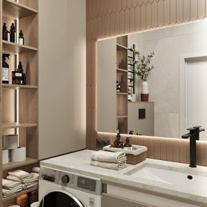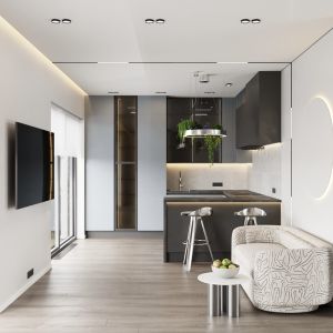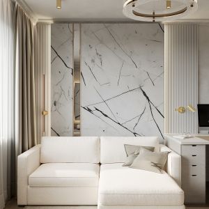 Использованы светлые тона и минималистичная мебель для создания просторного и уютного интерьера.