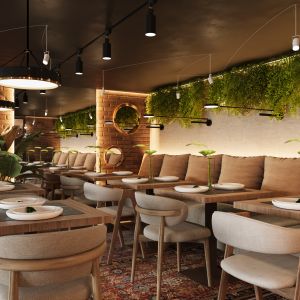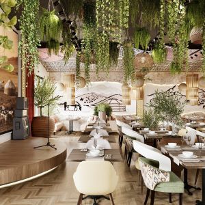 Обилие зелени, теплое освещение и уютная атмосфера